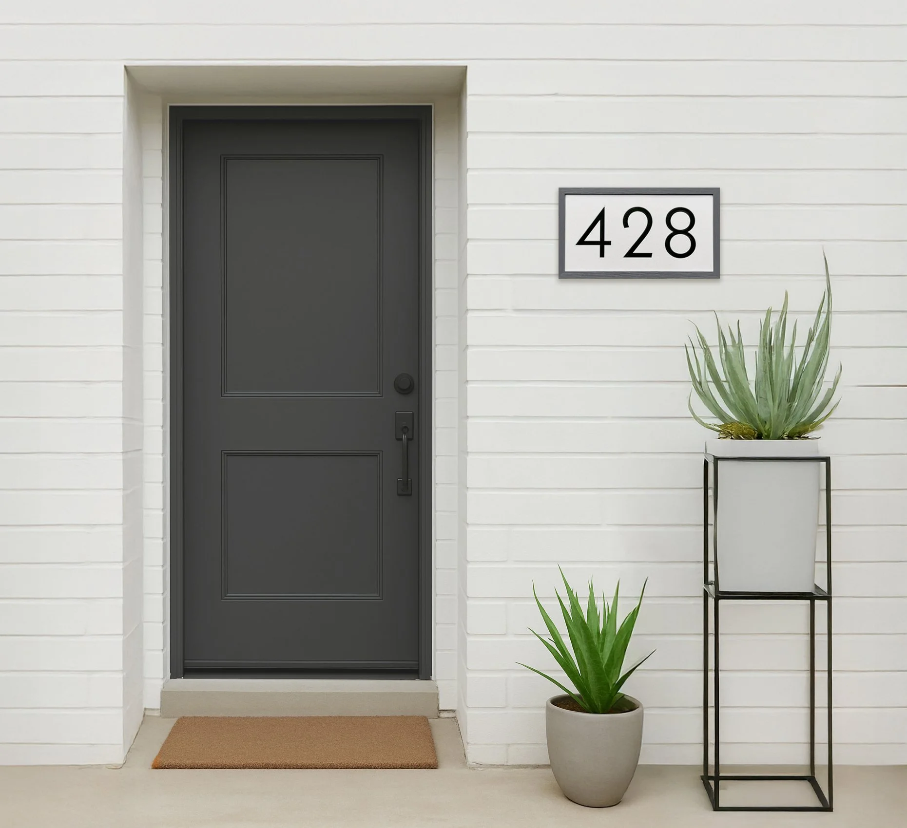 Explore our collection of modern and traditional house number signs, designed to complement any style of home. Each sign is crafted from weatherproof, maintenance-free materials that stand up to harsh outdoor conditions without fading or warping. Whether you prefer a sleek contemporary look or a classic design, our custom address plaques are built to make a lasting impression on your home’s exterior.